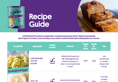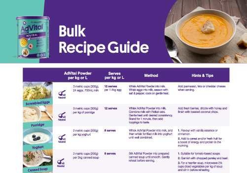 AdVital Complete Nutrition Powder Comparison Flyer AdVital PDF Information Flyer & Booklets AdVital Complete Nutrition Powder Product Flyer AdVital PDF Information Flyer & Booklets AdVital Complete Nutrition Product Flyer - Grab & Go PDF Information Flyer & Booklets AdVital Complete Nutrition Recipe Guide - Bulk AdVital PDF Mixing Guides and Recipes AdVital Hospital Strength Mixing Guide AdVital PDF Information Flyer & Booklets AdVital Hospital Strength Product Flyer AdVital PDF Information Flyer & Booklets AdVital Powder Recipe Guide - (Healthy Ageing) AdVital PDF Mixing Guides and Recipes Argie Wound Care Product Flyer Argie PDF Information Flyer & Booklets Carb Plus Product Flyer PDF Information Flyer & Booklets Flavour Creations At Home Brochure Flavour Creations PDF Flavour Creations Product Catalogue AdVital, Carb Plus, Flavour Creations, instant Thick, ProKick, Recover, Screamies, Shape It, Thick Plus PDF Information Flyer & Booklets Flavour Creations Range At A Glance AdVital, Carb Plus, Flavour Creations, instant Thick, ProKick, Recover, Screamies, Shape It, Thick Plus PDF Information Flyer & Booklets Fruits with Attitude Product Flyer Fruits with Attitude PDF Information Flyer & Booklets instant THICK Liquid - Bulk Serve Mixing Guide - Level 1 Slightly Thick instant Thick Video Mixing Guides and Recipes instant THICK Liquid - Bulk Serve Mixing Guide - Level 2 Mildly Thick instant Thick Video Mixing Guides and Recipes instant THICK Liquid - Bulk Serve Mixing Guide - Level 3 Moderately Thick instant Thick Video Mixing Guides and Recipes instant THICK Liquid - Bulk Serve Mixing Guide - Level 4 Extremely Thick instant Thick Video Mixing Guides and Recipes instant THICK Liquid - Pump Assemble - 2.75L Bottle instant Thick Video Mixing Guides and Recipes instant THICK Liquid - Pump Assemble - 950mL Bottle instant Thick Video Mixing Guides and Recipes instant THICK Liquid - Pump Assemble - Single Serve 2.75L Bottle instant Thick Video Mixing Guides and Recipes instant THICK Liquid - Single Serve 2.75L Mixing Guide - Level 1 Slightly Thick instant Thick Video Mixing Guides and Recipes instant THICK Liquid - Single Serve 2.75L Mixing Guide - Level 2 Mildly Thick instant Thick Video Mixing Guides and Recipes instant THICK Liquid - Single Serve 2.75L Mixing Guide - Level 3 Moderately Thick instant Thick Video Mixing Guides and Recipes instant THICK Liquid - Single Serve 2.75L Mixing Guide - Level 4 Extremely Thick instant Thick Video Mixing Guides and Recipes instant THICK Liquid - Single Serve Mixing Guide - Level 1 Slightly Thick instant Thick Video Mixing Guides and Recipes instant THICK Liquid - Single Serve Mixing Guide - Level 2 Mildly Thick instant Thick Video Mixing Guides and Recipes instant THICK Liquid - Single Serve Mixing Guide - Level 3 Moderately Thick instant Thick Video Mixing Guides and Recipes instant THICK Liquid - Single Serve Mixing Guide - Level 4 Extremely Thick instant Thick Video Mixing Guides and Recipes instant THICK Liquid Bulk Serve Mixing Guide - Cold & Hot Drinks instant Thick PDF Mixing Guides and Recipes instant THICK Liquid Product Flyer instant Thick PDF Information Flyer & Booklets instant THICK Liquid Single Serve Mixing Guide - Alcohol & Medical Drinks instant Thick PDF Mixing Guides and Recipes instant THICK Liquid Single Serve Mixing Guide - Cold & Hot Drinks instant Thick PDF Mixing Guides and Recipes instant THICK Mixing Guide - Bulk Serve instant Thick PDF Mixing Guides and Recipes Instant THICK Mixing Guide - Fresubin Supplements instant Thick PDF Mixing Guides and Recipes instant THICK Mixing Guide - Single Serve instant Thick PDF Mixing Guides and Recipes Instant THICK Mixing Guide – Pictorial - Single Serve instant Thick PDF Mixing Guides and Recipes instant THICK Powder - Single Serve Mixing Guide instant Thick Video Mixing Guides and Recipes instant THICK Product Flyer instant Thick PDF Information Flyer & Booklets ProKick Product Flyer ProKick PDF Information Flyer & Booklets Recover Product Flyer Recover PDF Information Flyer & Booklets SCREAMIES Product Flyer Screamies PDF Information Flyer & Booklets Shape It Instant Product Flyer Shape It PDF Information Flyer & Booklets Shape It Instant Recipe Guide Shape It PDF Mixing Guides and Recipes thickplus Mixing Guide Thick Plus PDF Mixing Guides and Recipes Wounds Australia Partnership Flavour Creations PDF Information Flyer & Booklets